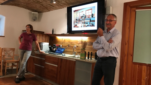 Iz Kanala smo zgodaj zjutraj z našim šoferjem Silvom iz Silbusa krenili iz Kanala, Brice smo pobrali v Solkanu in se odpeljali čez Italijo po dolinah do Avstrije. Najprej smo se ustavili na kmetiji Gams - v oljarni družine Mikl. Kmetija se ukvarja s pridelavo olj in jagod, imajo pa še kar nekaj zanimivih dejavnosti. Poizkusili smo njihova olja, in si ogledali njihovo kmetijo, kjer svoje pridelke tudi prodajajo.
